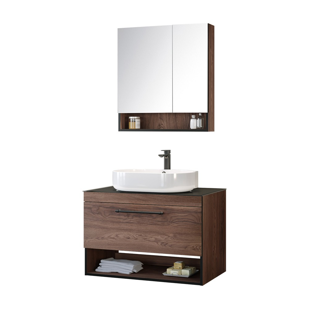 Orka Knidos 90 cm Ayna Dolaplı Banyo Dolabı (KND90A+KND75U)